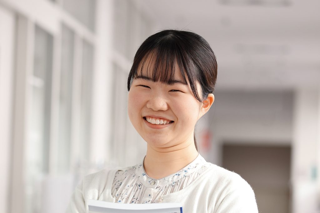 幼い頃から体が弱かったせいもあり、栄養の分野に興味がありました。と言っても、栄養に関する勉強をしていたわけではないので、予備知識ゼロで入学。授業は実習が多く、調理を学ぶことでいまでは台所に立つことも増えました。おいしさだけでなく、栄養価の高い食品を選ぶようになったし、何より自主的に勉強するようになりました。将来は病院で管理栄養士として働き、体の弱い子どもたちの助けになりたいと思っています。